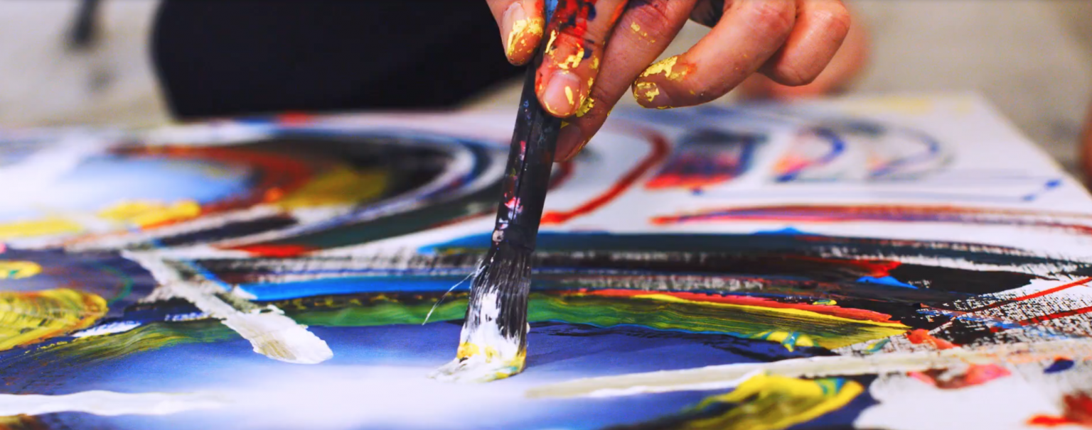 躍動感のある筆使いには、ダンスに傾倒したこともある経験が投影されている。